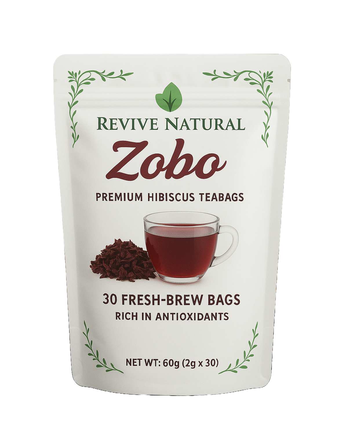 Discover the vibrant taste and natural wellness of Revive Zobo Teabags — a premium hibiscus infusion inspired by Africa’s favorite drink, Zobo.